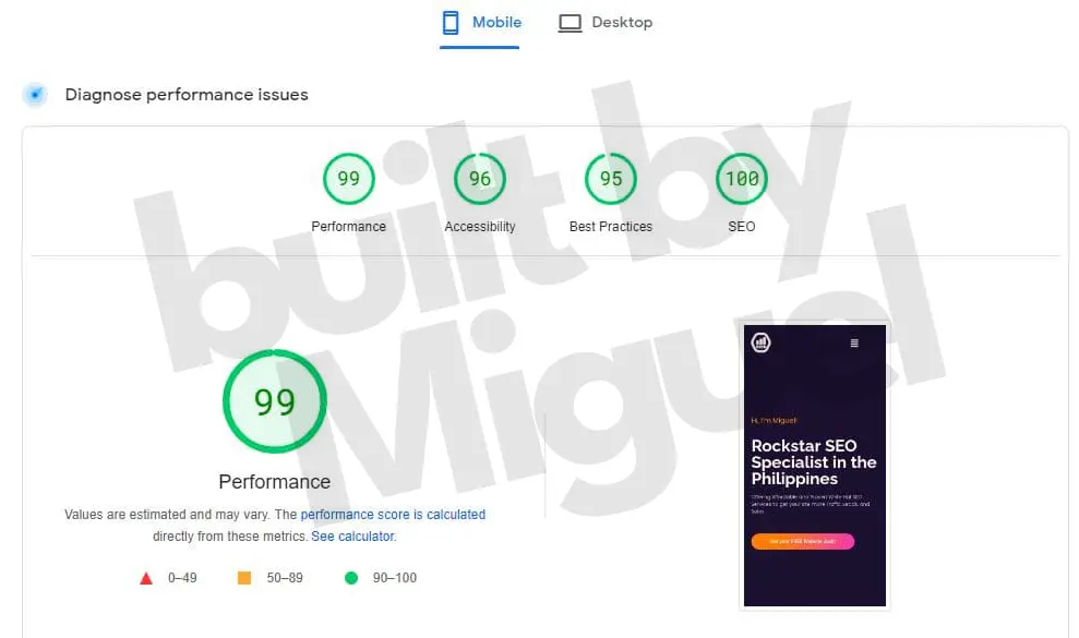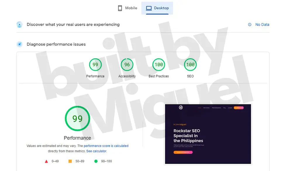 My personal SEO service site is built for high speed and growth. It ranks for competitive terms while maintaining a perfect performance score.